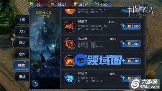 军团还有科技技能,成员可以根据自身需要花金币获取科技技能,团长的技能加成可以高达130%,副团长最高可达120%,战力提升突飞猛进。