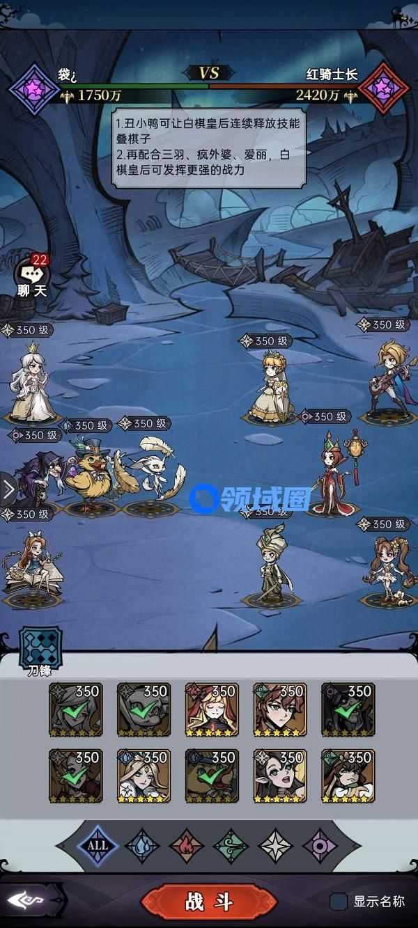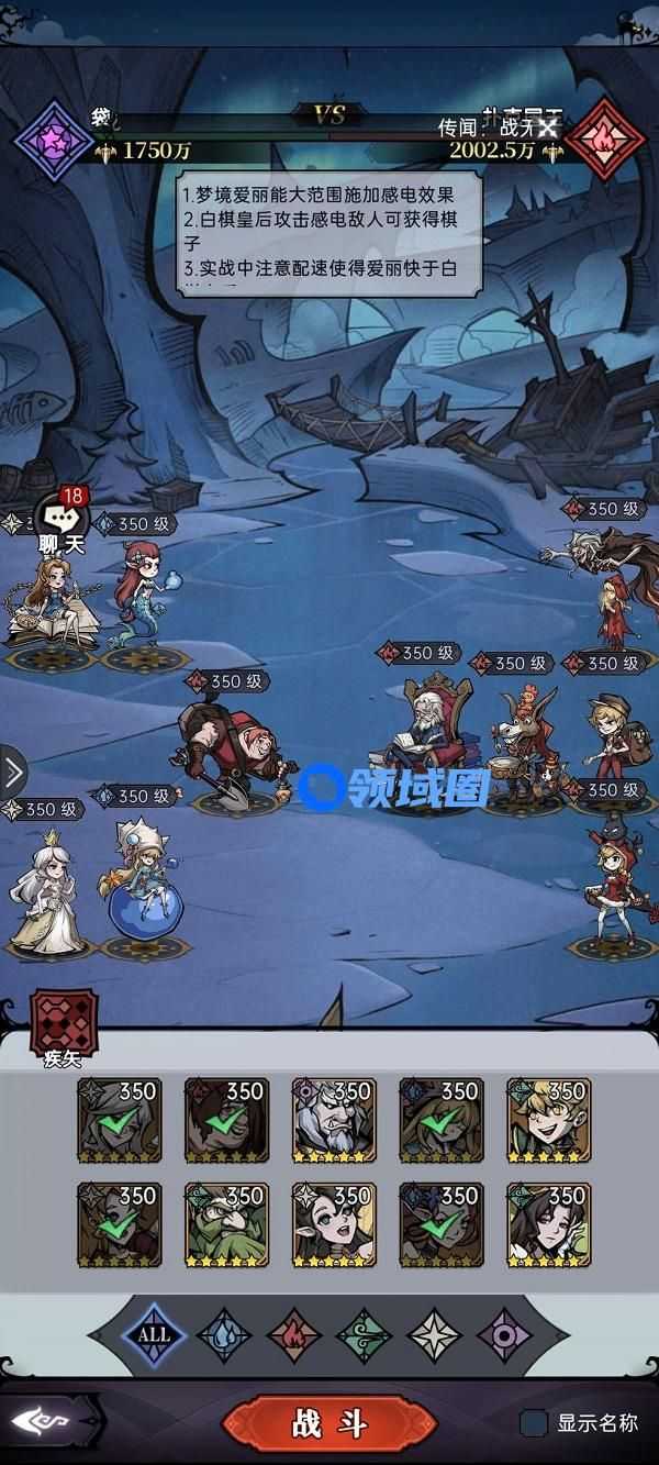2.魔镜物语命运棋局1-2通关阵容及站位如下图所示: