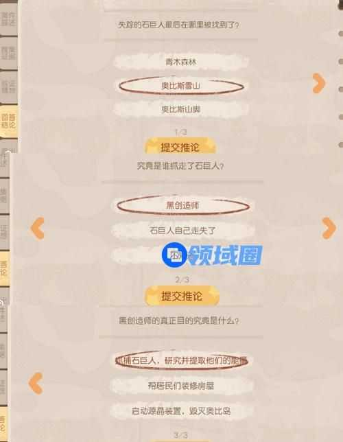 3、回答结论:奥比斯雪山、黑创造师、抓捕石巨人,研究并提取他们的能量。