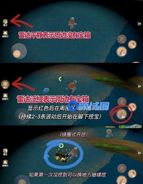 4、雷达频繁发出红色波动!表示宝箱就在附近!可以在脚下用铲子进行挖宝。