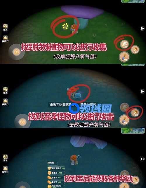 2、左上角氧气值是公用的!所以如果附近有小怪物或特殊植物~记得进行收取!提升氧气值。
