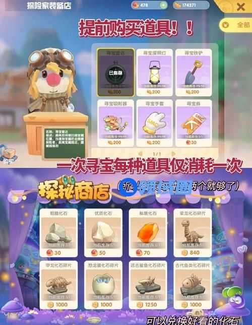 通过挖宝赚取的积分可以在探秘商店兑换各种优质化石碎片,直接获得的恐龙化石碎片也可以囤着,凑齐后可以兑换化石雕塑。