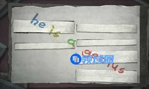 将问题与回答正确匹配,拼好后将报纸翻页,写着一行彩色英文【he is a genius】。
