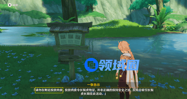 看到一张告示,根据提示请勿在入夜后投喂肉食,夜晚投喂后「长鬓虎罗阇」会立即出没,击杀后完成第二只猛兽防治。