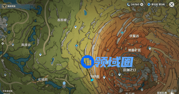 来到缘觉塔副本,向东南方向层岩巨渊的丹砂崖方向,一路向下走。