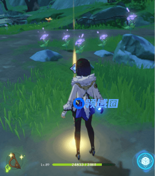 触碰花后打通道路,再触碰花解产生四叶印,先攻击阻碍物拿一枚原始松脂。