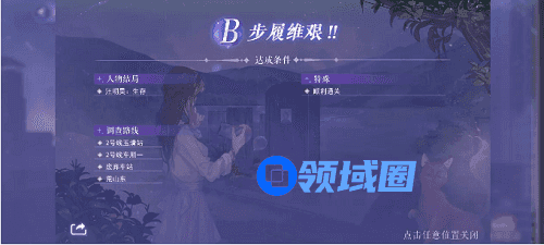 3、接下来是B级步履维艰结局。该结局关键人物【汪明昊】状态为生存,两个事件【地铁怪事】和【她与他】都完成。达成条件为在1-3【废弃车站】3选1环节中先选择汪明昊进行救治,在1-4的推理环节中选择【约定】。