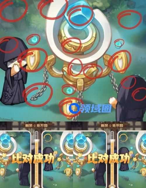1、从上图的标记里找出五处不同的地方就能通关了。