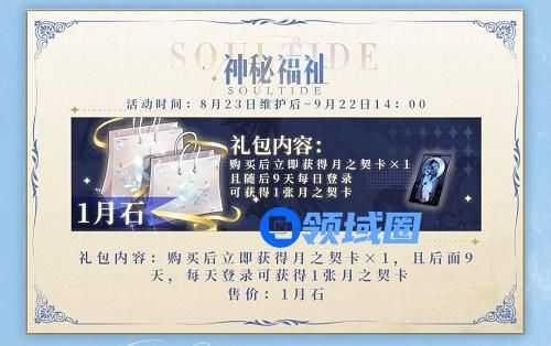 神秘福利:看似很不错,实际上很一般。十张月之契卡其实不怎么值钱,月石又只能氪金获得。如果你从没氪金,那这个礼包相当于6月石10卡,你打算继续氪金,这个礼包也相当于2月石10卡,因为目前氪金和礼包均没有奇数月石的,不仅你会有1月石花不出去,你每天还要看着这1月石的零头,想想强迫症就难受的不得了,只能等下一次1月石礼包才能花掉。只能说这个礼包吸引力相当大,很多萌新也会买,我也不敢说不让大家拿这相对便宜的十连,只能说见仁见智。