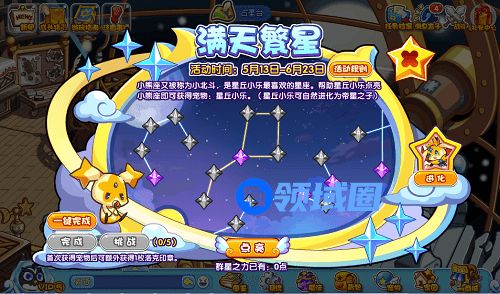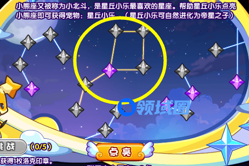 5、当小熊星座全部点亮(上图中黄色圆圈为小熊星座)即可领取宠物:星丘小乐。