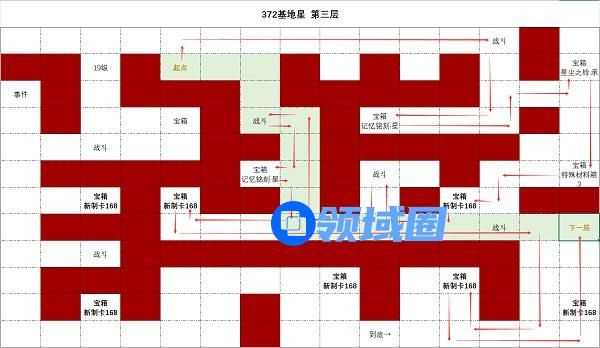 3、地图解锁顺序︰「废墟地表」->「甄选区域」一>「星门中转站」一>「372基底」,再次强调,解锁下一领域,不需要当前地图100%,只要按照首次探索路线或红色箭头,从入口到出口(即完成度非100%),便可解锁下一个地图。
