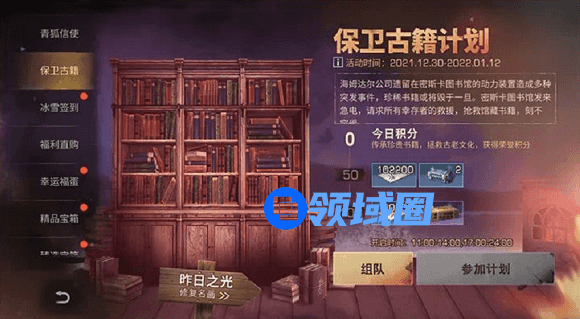 2、三系熟练度15级以上的幸存者可在活动时间内8人组队,前往密斯卡园区图书馆拯救珍贵书籍与画布碎片带回贸易联盟;珍贵书籍可换成积分达到一定值可获得奖励;画布碎片可对世界名画进行修复,修复后可查阅该画的作者与背景,当修复世界名画到达一定数量时将会通过邮件获得奖励;
