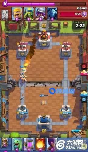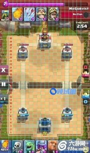 你需要把一些如骑士、野猪等进攻单位放到另一侧突袭,手里留着如野蛮人、苍蝇群、电塔、墓碑等用来防御。