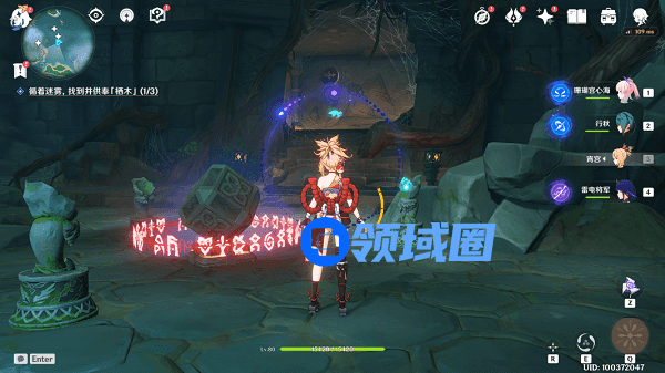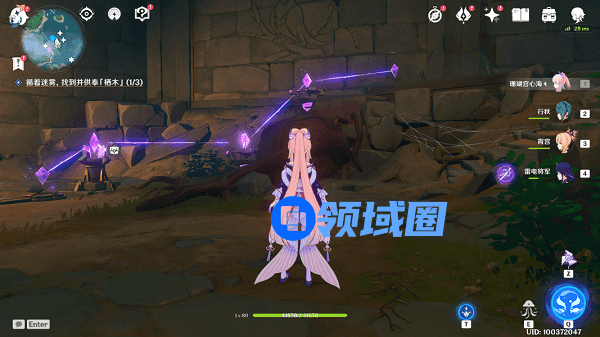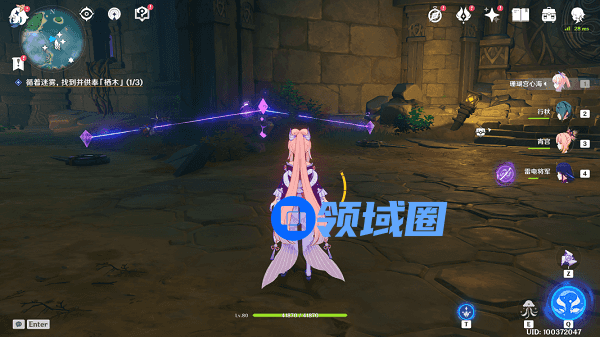 2,右上羽毛会移动,最后进入一处屏障中,携带沿途雷种子进入即可