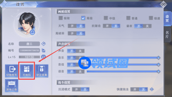 3、兑换方法:点击左上角头像,选择并输入兑换码,邮箱领取奖励。