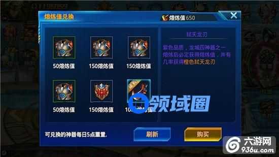 熔炼兑换物品每个物品只能被兑换一次,每天早上5点兑换物品如果你等不急了可以使用金币在规定次数里刷新出你想要兑换的物品进行兑换。(注意哦,不要疯狂刷新而错过了你想要兑换的物品哦。)