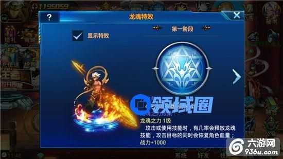 战力+1000 效果:攻击或使用技能有几率释放龙魂技能攻击目标的同时回复角色血量。
