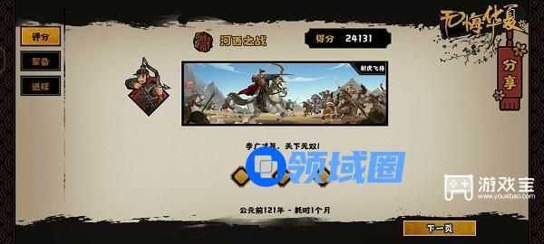 李广开局携带1级弓兵,以及兵法:飞将强弩,没啥好说的,开局买轻骑兵和重骑兵一个,然后sl刷星罗棋布直接刚,就是进入大漠后无法探查有些坑,全靠运气,这个负面buff没有对不起他的“迷路将军”这个称号