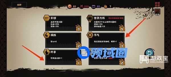 3.然后购买节气这种每个营地获得粮草的政策,以及外事这种获得探查次数的政策,这两种政策也是要优先点出的,粮草不够可以探索。