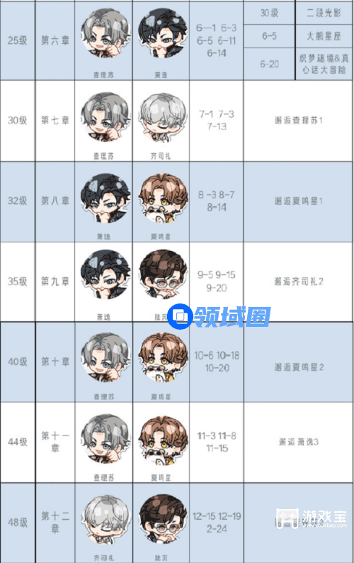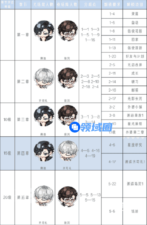 2、18-09,18-11,10-15,光结局齐司礼,夜结局查理苏,等级60。