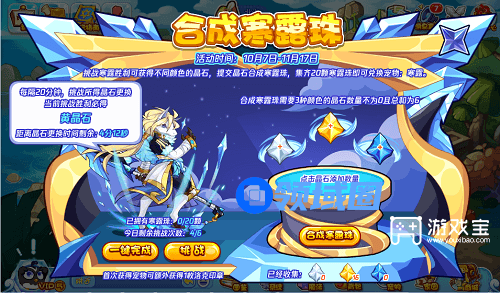 4、收集足够的晶石后点击“合成寒露珠”,以下合成配方可供参考,但不保证100%成功: