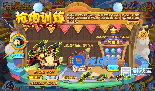 5、射击中的气球纳入击中目标,累计击中80个气球即可开启超进化:装甲瓢虫。