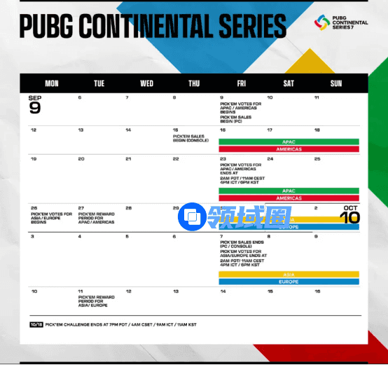 值得一提的是,亚太和美洲赛区的比赛已经于9月16日开始,而欧洲和东亚赛区的比赛将于9月30日开始。每个赛区需要进行总共6天,每天5场的比赛(总共30场),亚太赛区和美洲赛区第一阶段的比赛安排在9月16日到9月18日,第二阶段为9月23日到9月25日;东亚赛区和欧洲赛区则是从9月30日开始到10月2日结束第一阶段的比赛,第二阶段安排在了10月7日到10月9日。