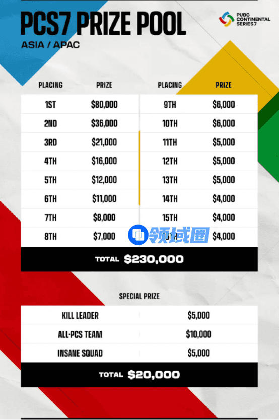 每个赛区除了基础奖金池之外,还设有特别奖金池: