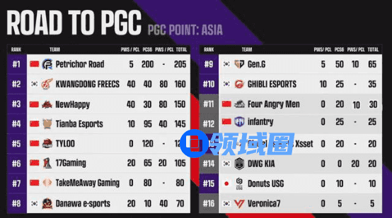 随着夏季赛的积分榜排名出炉,代表PCL赛区出征本次PCS7的战队分别是:NH战队、Tianba战队、17战队、4AM战队、PeRo战队、iFTY战队、GFY战队、TYLOO战队。他们将接受来自同一东亚赛区的中国港澳台、日本及韩国战队挑战。2022PGC全球总决赛东亚赛区一共有12个名额,去掉日本和中国港澳台地区都有的一个保底名额,PCL赛区和韩国赛区一共有10个名额,但是,结合目前的积分局面来看PeRo战队、KDF战队、NH战队、Tianba战队、TYLOO战队的积分基本已经锁定PGC全球总决赛的名额,17战队如果能延续常规赛的状态,那么拿到PGC全球总决赛的门票也是板上钉钉的事。那么在十六支战队里,留给其他8支队伍的名额只有4个,意味着想要争夺这4个PGC全球总决赛的名额,必将展开一个积分修罗场。