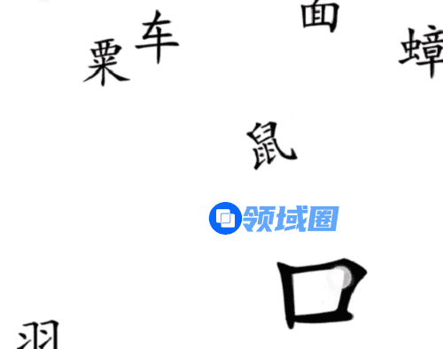 蝉 蚕 鞭 月饼(点一下“月”字)米(点“粪”字拆)豆(点“鼓”字拆)