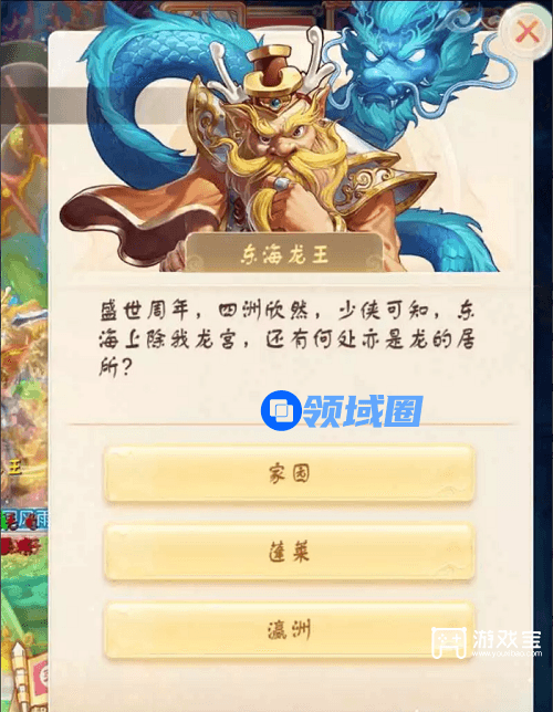 2、盛世周年,四洲欣然,少侠可知,东海上除我龙宫,还有何处示是龙的居所?