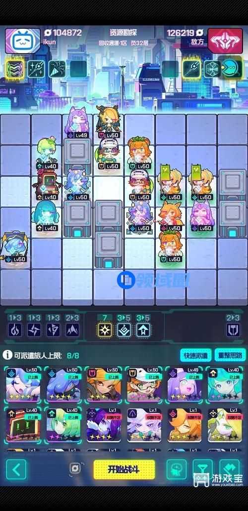 3、附上阵容跟位置,学者羁绊yyds,以上就是跃迁旅人32层打法攻略了,更多游戏攻略关注游戏宝。