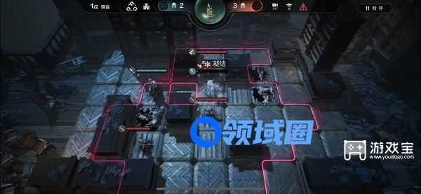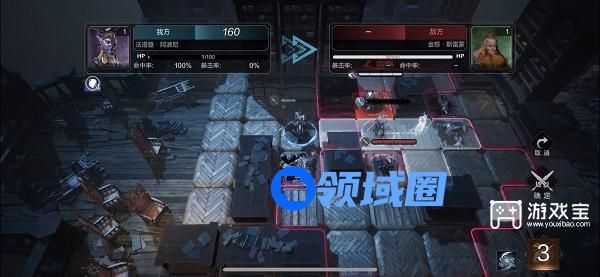 回合结束,敌方回合开始,剑士攻击我们的冰法,冰法很脆弱,被攻击一次就血量见底,但是由于有免疫技能(遭受致死攻击后,免疫一回合伤害,每场战斗只能触发一次),还是会卡在这里阻挡敌人的进攻路线。