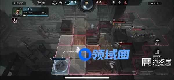 3、将枪兵拉到下图所示位置,堵住敌人的进攻路线,回合结束。
