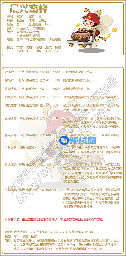 洛克王国晨兴蜜蜂是最新推出的宠物之一,技能表可以让玩家提前了解它拥有的技能和性格等,游戏宝小编带来洛克王国晨兴蜜蜂技能表一览,一起来看看吧。
