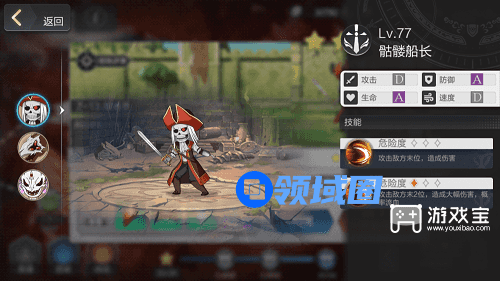 第一关中,骷髅队长的第一攻击目标就是我方的后排3、4号位,并且,骷髅队长的技能能够对3、4号位遭成大幅伤害,概率产生流血(持续掉血),需要能够回复而且肉度较高的角色放4号位才行,而这个人正是加了草药盾的“男妈妈”-盾勇。