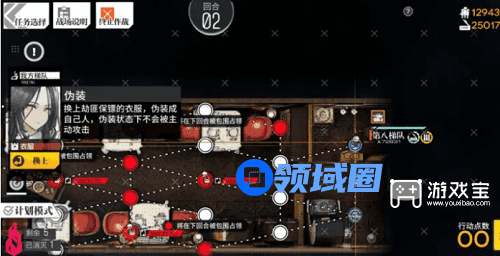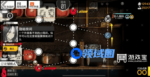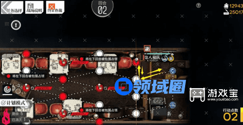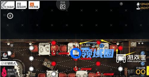 1、本关有伪装的机制,不过仍然有无战通关的路线,这里展示的是伪装通关路线第一回合,机场下一队,随后向上走到中立机场,可以知道这里是一个隐秘房间。