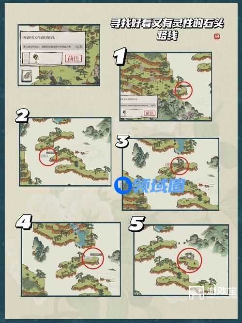 3、按照上图的路线顺序就可以完成好看又有灵性的石头任务了,希望可以帮到大家。