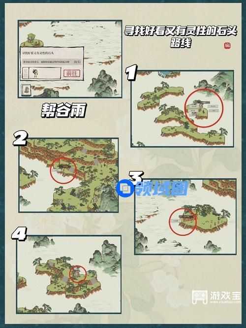 江南百景图寻找好看又有灵性的石头任务需要帮大暑寻找奇石,那这些石头在哪里呢?游戏宝小编带来江南百景图寻找好看又有灵性的石头路线攻略,一起来看看吧。