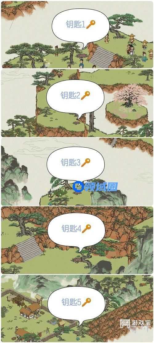 2、不知道怎么找到的对照着上图的五个位置就可以找到五把钥匙了,每个章节里有一把钥匙。