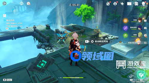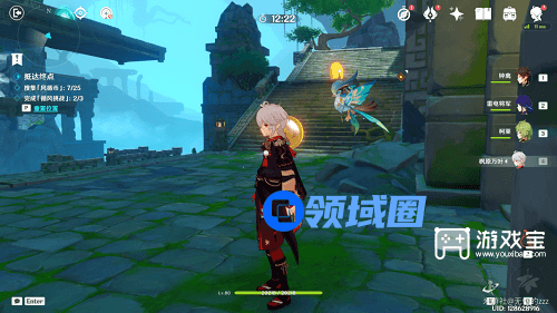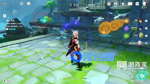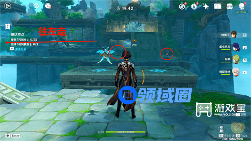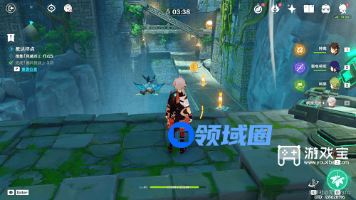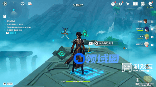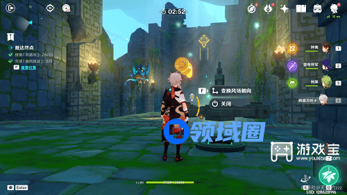 1.首先,我们进入秘境以后,先关闭图中右侧的机关,将风场关闭,随后将左边的拦风枢的风场方向调整为向上,随后往左走。