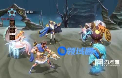 6、中排【唐泰斯】本身可以给敌人上群体减攻速效果,游戏中攻速这一属性还是非常强力的,因为这也关乎到英雄能量充能的速度,群体减攻速很好的限制射手类型的输出,同时还有全体【冰冻】,【奥德修斯】与火队【库库尔坎】有着相似的技能机制,【奥德修斯】作为水队的ADC,被近身可以向后跳并射出一箭,附加【冰冻】效果,大招AOE的物理伤害,也能很好的清除群怪。
