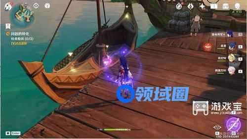 往地图的西方向走,前往船体,检查任务指引的3处位置