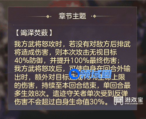 三国志幻想大陆烽火流金第一章怎么打?三幻近期开了山河遗迹烽火流金赛季,很多玩家不知道用什么阵容挑战,游戏宝小编带来三国志幻想大陆烽火流金第一章通关攻略,希望可以帮到大家。