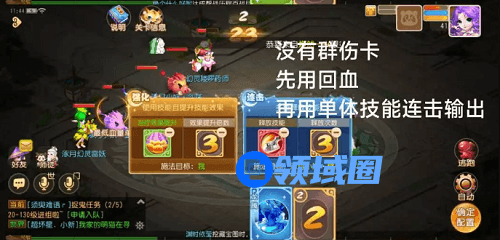 2、没有群伤卡先用回血,再用单体技能连击输出。