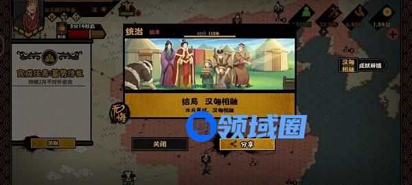 3.和亲是15分钟一次,需要一些金钱+1丝绸+ 5威望=+30匈奴好感。如果威望<5,则无法和亲