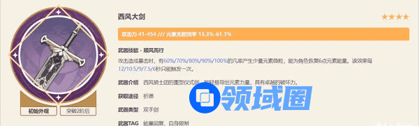 也是主打充能的武器。不错的充能面板加上被动效果,只要产生暴击就能额外产球,充能稳定。加上因为是早期出现的武器,所以每个人手上或多或少都会有一两把西风大剑,在没有其他武器的情况下,拿出来使用也是不错的。