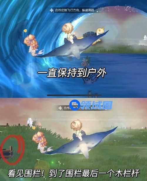 3、一直保持到户外直到看见左边的木围栏。