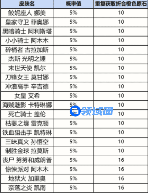 1.必得奖励概率:每次开启必定获得一定数量的橙色原石。