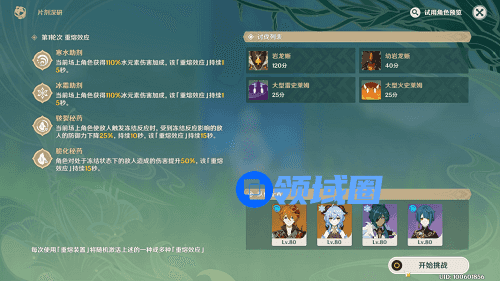 因为选择的难度一,敌人血量不高。挑战时甘雨在地图中心放个元素爆发,然后凯亚行秋元素爆发脱手用公子收割即可,公子元素战技进入冷却后换至甘雨输出即可。